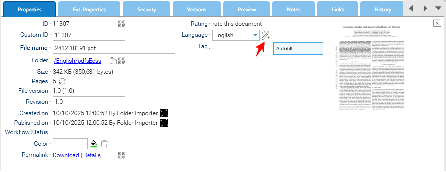 You can also trigger autofill for specific fields (tags and language) directly from the Properties tab.