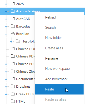 Ahora, en el árbol de carpetas, haga clic derecho en la carpeta de destino y seleccione el elemento Pegar. Como puede ver, los documentos se copian en la ubicación de destino. Tenga en cuenta que ellos son completamente nuevos documentos que no están conectados con los originales.