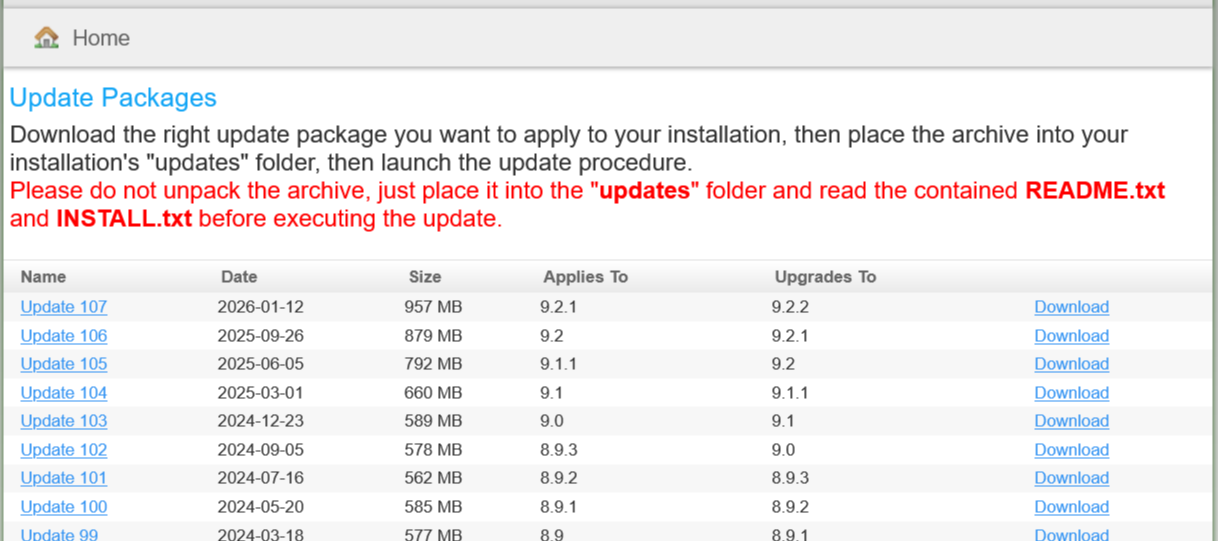 En esta lista encontrará todos los paquetes de actualización oficiales; cada paquete de actualización lleva el sistema de una versión a otra.