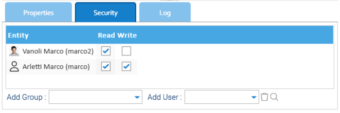 Nella scheda Sicurezza è possibile definire quali utenti e/o gruppi possono accedere o addirittura modificare il form.