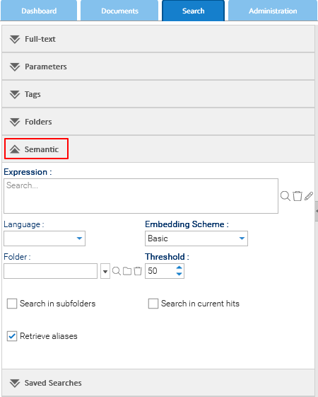 Se abilitata, la ricerca semantica viene applicata solo ai documenti già restituiti da una ricerca precedente, consentendo un affinamento progressivo dei risultati.